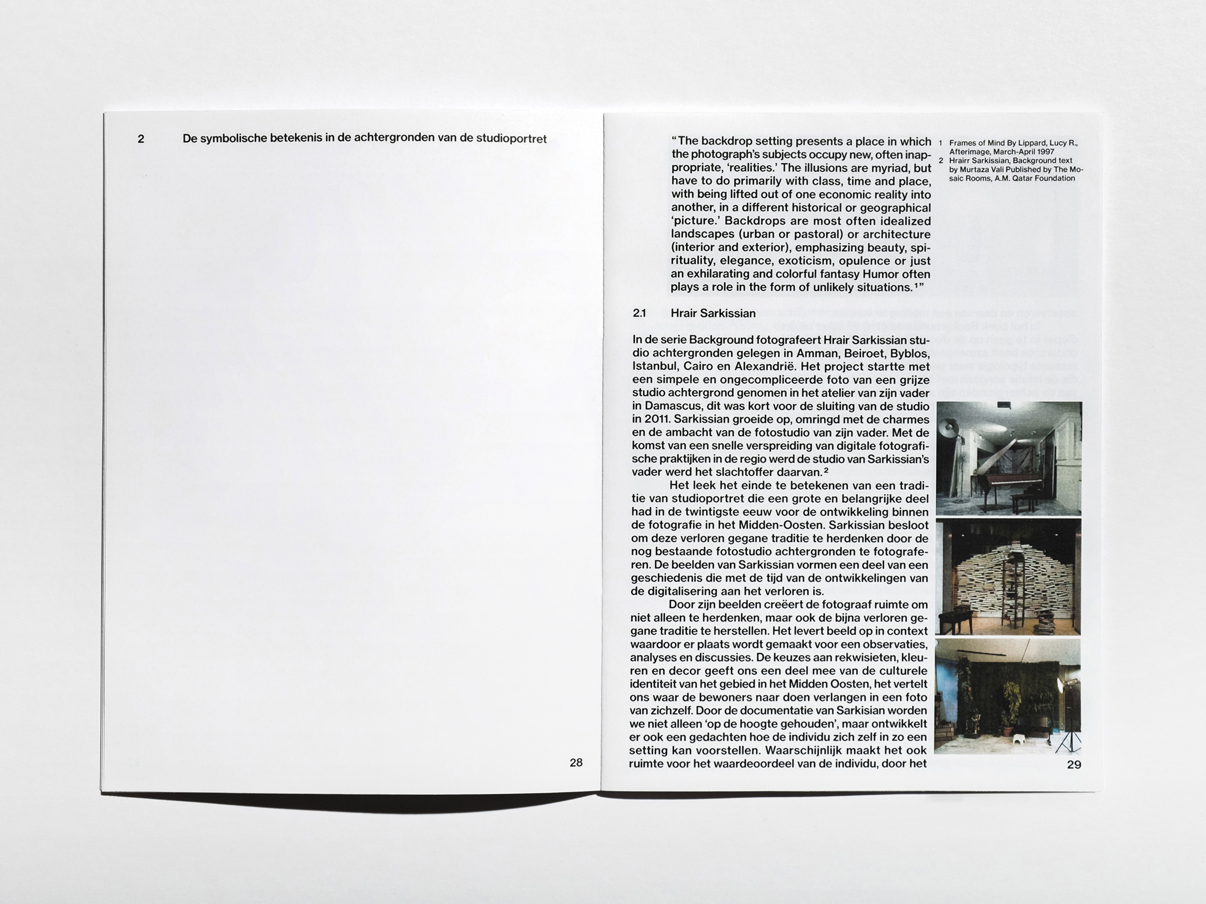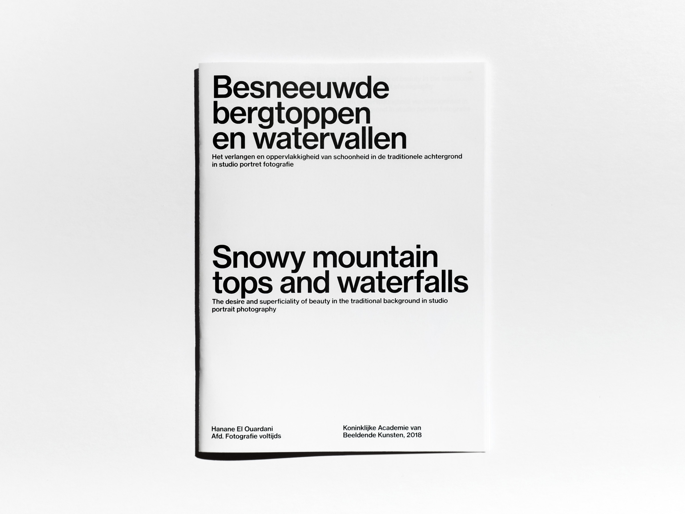 Photographer Hanane El Ouardani’s thesis, ‘Snowy mountain tops and waterfalls’, addresses popular aesthetics and their ideological implications in different cultural spheres, while focusing on the object of the backdrop in the tradition of studio portrait photography.